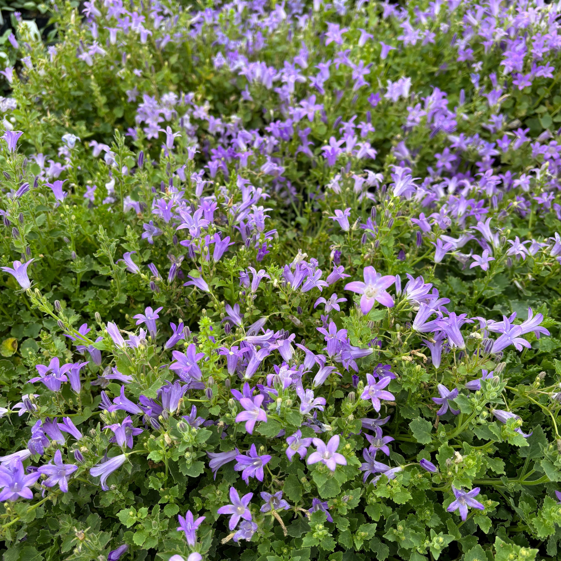 Adorn all the nooks and crannies in your garden with this diminutive, enchanting bellflower. There are many perks of this wallflower, namely its ability to grow in tight spots like the cracks of stone walls, stairs, and pathways. It can drape or carpet and will burst into bloom with bluish purple bell-shaped flowers.