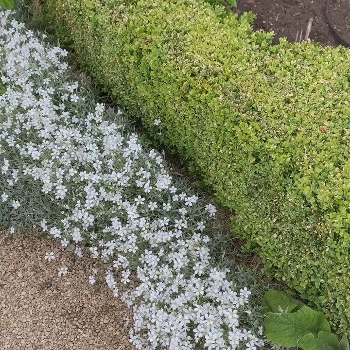 We first discovered snow-in-summer at a garden in England. Its silvery foliage and bounty of white flowers truly looks like a carpet of snow in the garden. It is a low growing groundcover for full sun and can handle dry soil. It declines in high heat and humidity but is a great choice for regions with mild summers. The cultivar 'Yoyo' is less aggressive than the straight species.