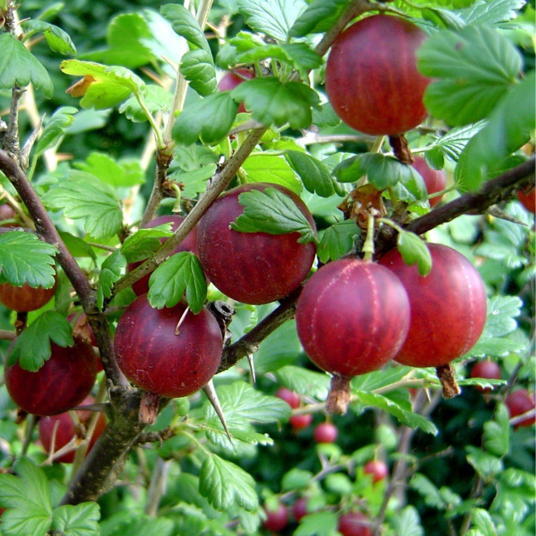Captivator gooseberry is a nearly thornless plant with good resistance to white pine blister rust and powdery mildew. It is an American x European hybrid developed in the 1930s. In gooseberry trials, Captivator often makes the top of the list.